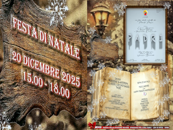 Segnate la data: il 20 Dicembre 2025, dalle 15:00 alle 18:00, il CMDX APS vi invita al locale MOOD di Ostia Lido per la sua tradizionale Festa di … [Per saperne di più ...] infoFesta di Natale 2025: Anteprima del nuovo Cortometraggio “PADRI”!