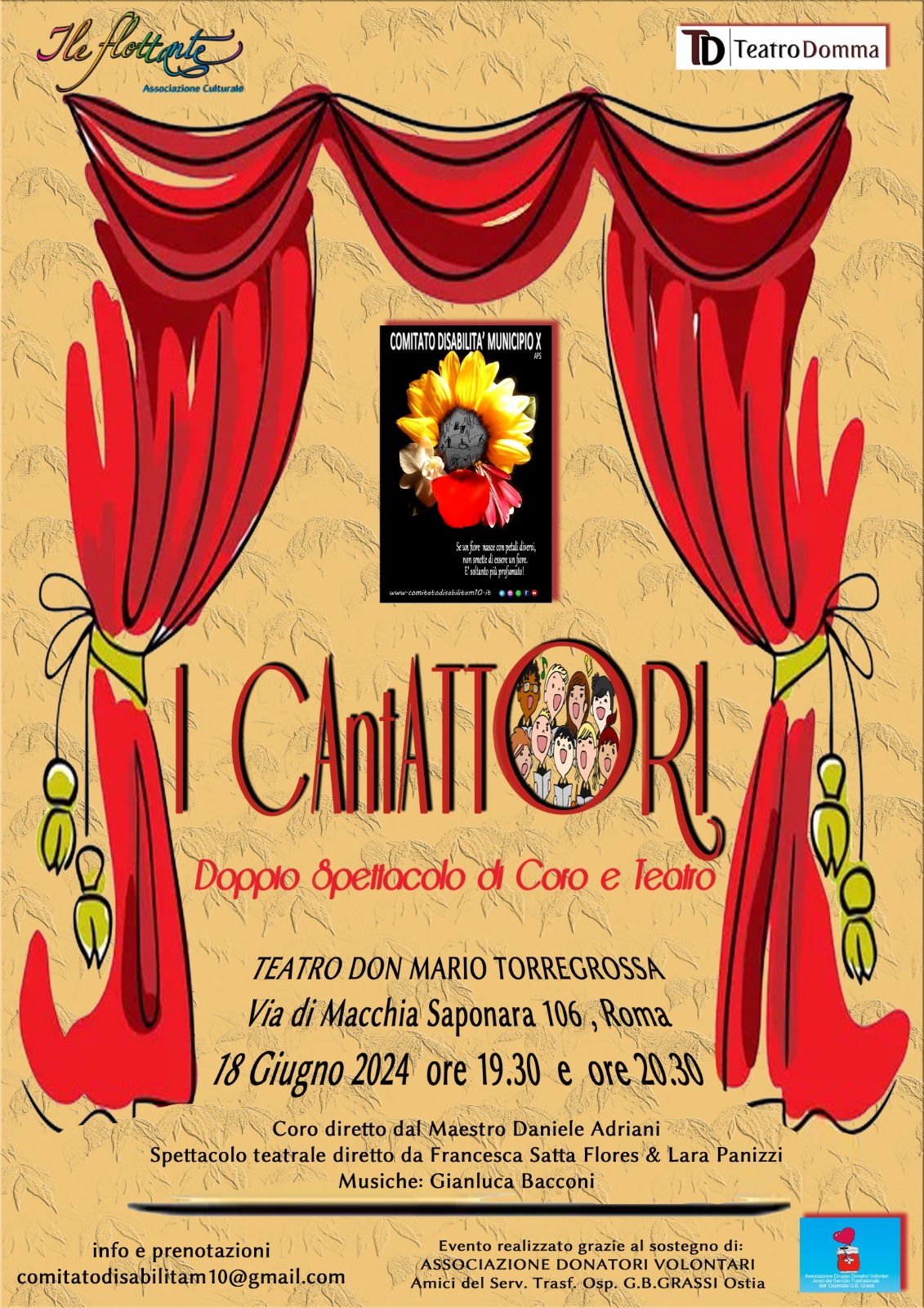 Ringraziamo per il supporto l’ ASSOCIAZIONE DONATORI VOLONTARI Amici del Serv. Trasfusionale Ospedale GRASSI di Ostia ed in collaborazione con il Centro di formazione teatrale “Associazione culturale Ile Flottante” rappresentata da Francesca Satta Flores e Lara Panizzi e con il Maestro di coro Daniele Adriani.