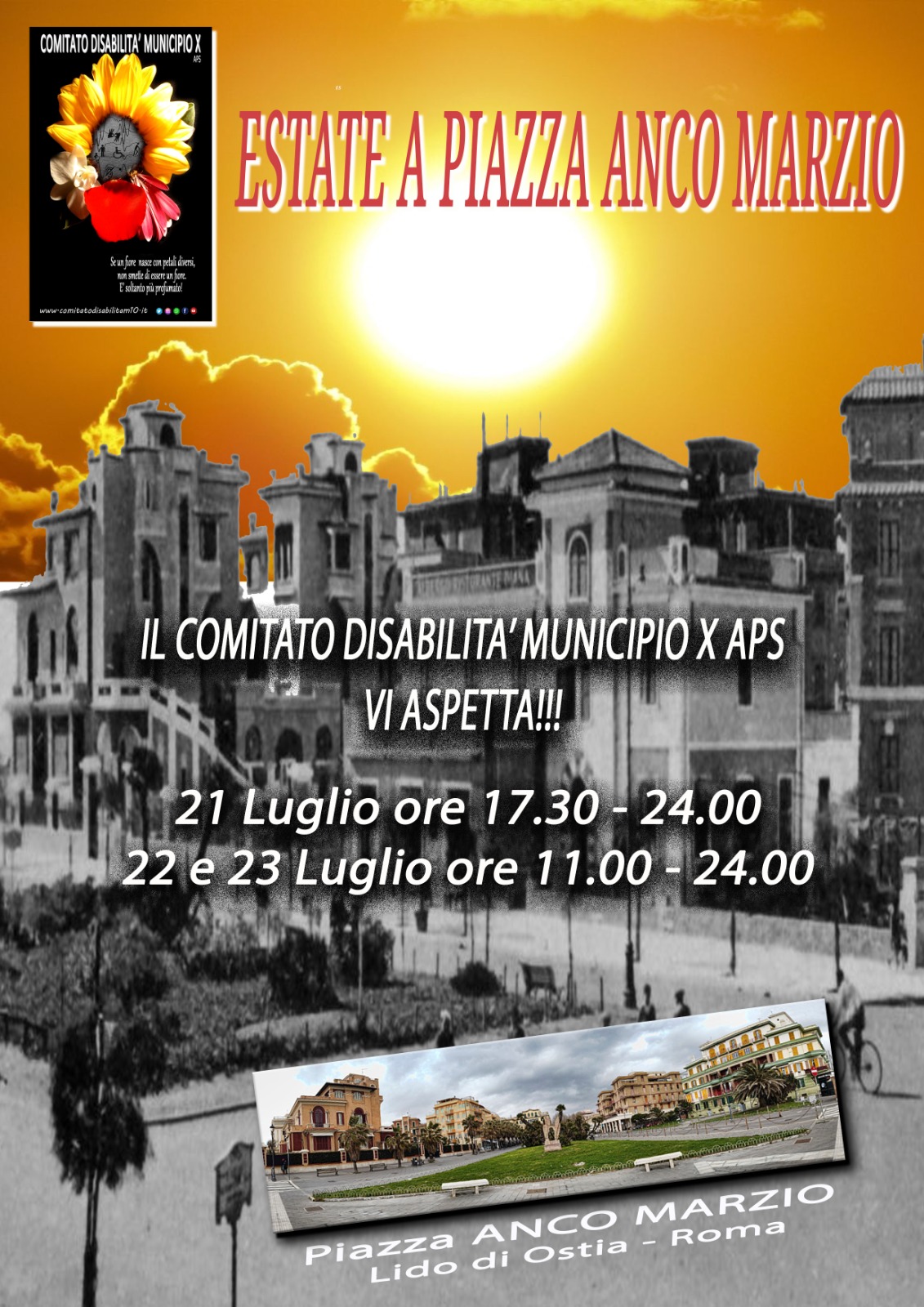 In occasione dell’evento estivo per il mese di Luglio nel Municipio X, il Comitato Disabilità Municipio X sarà presente a Piazza Anco Marzio nei seguenti giorni: 21/22/23 negli orari indicati nella locandina.