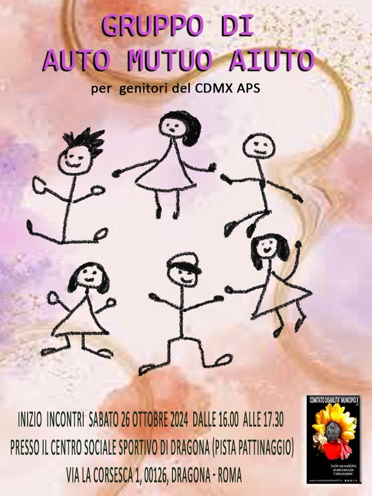 Il Gruppo di AUTO MUTUO AIUTO con la Dott.ssa Flavia Cantarella, organizzato gratuitamente dal Comitato Disabilità Municipio X APS e rivolto a tutti i genitori della nostra associazione, prenderà inizio sabato 26 ottobre presso la pista di pattinaggio del Centro Sociale Sportivo a Dragona.