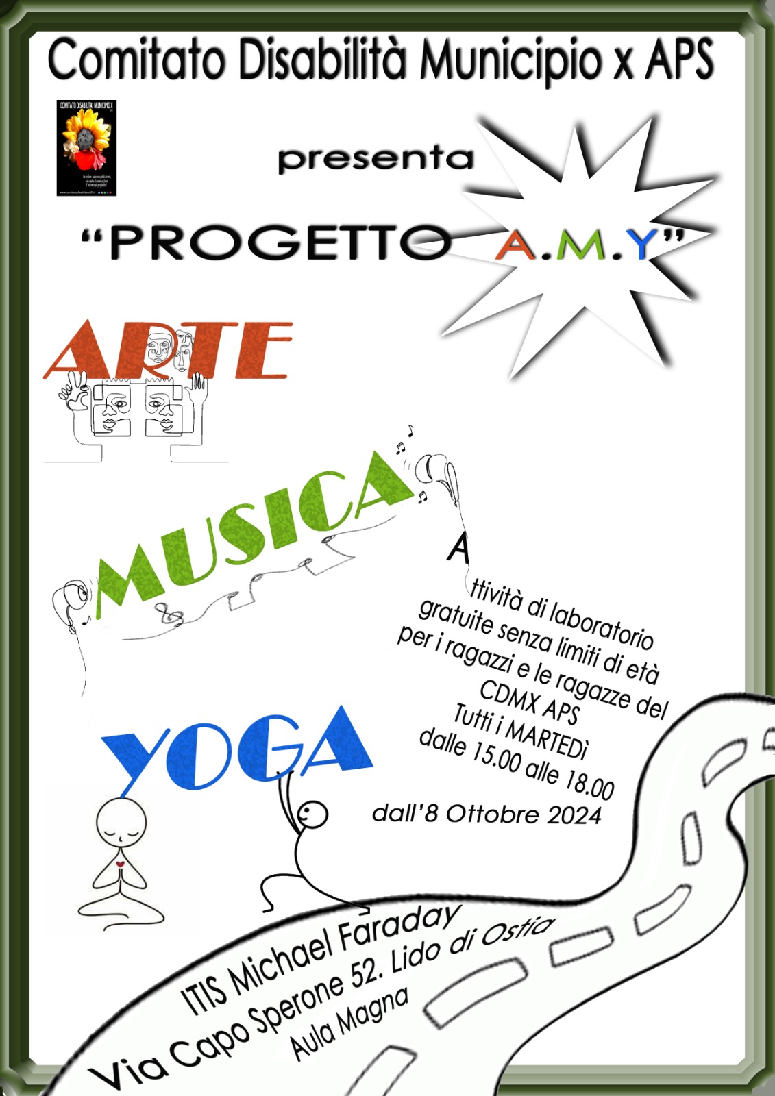 PROGETTO AMY organizzato gratuitamente per tutte le ragazze ed i ragazzi con disabilità, senza limiti di età, dall’8 ottobre ogni martedì dalle 15.00 alle 18.00 presso l’I.T.I.s. Faraday.