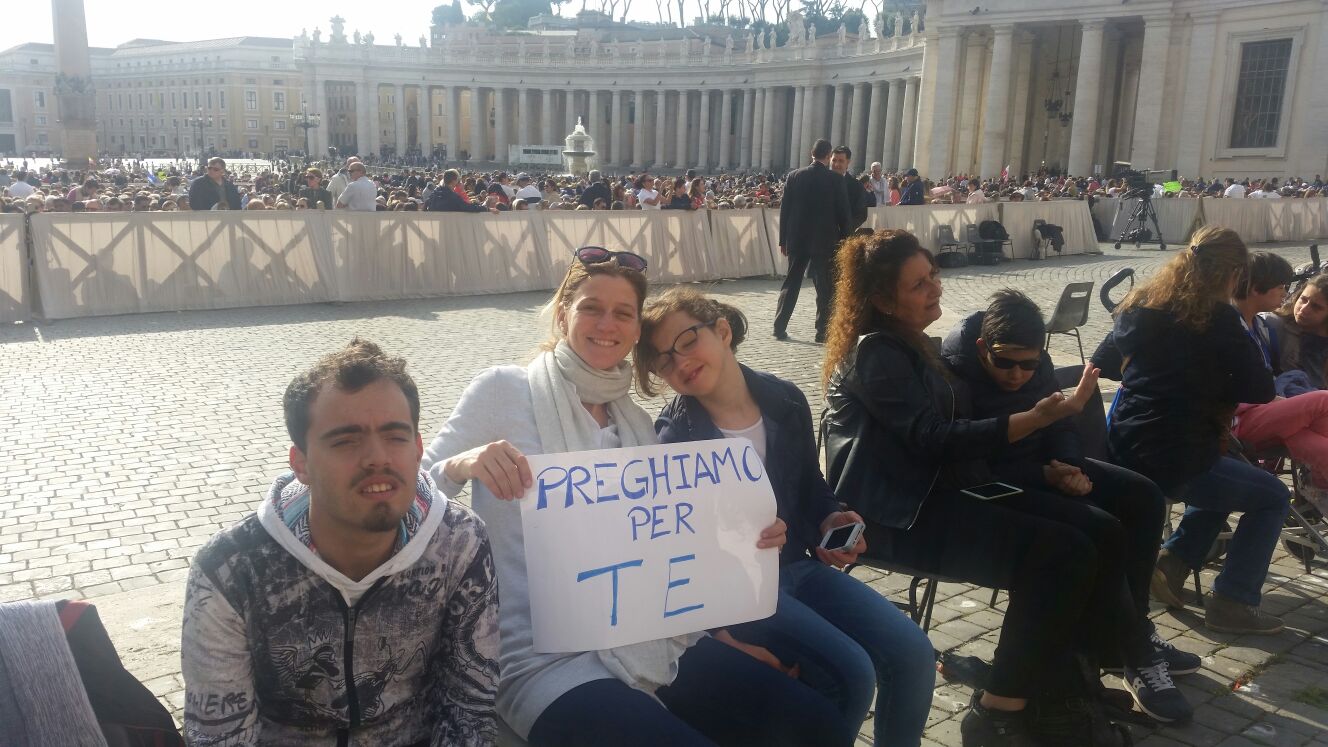 A nome suo e di tutti i suoi amici del Comitato, Tommaso chiede al Papa una preghiera forte e speciale per chi, come loro, non conosce ostacoli ne tristezza e crede nella vita.