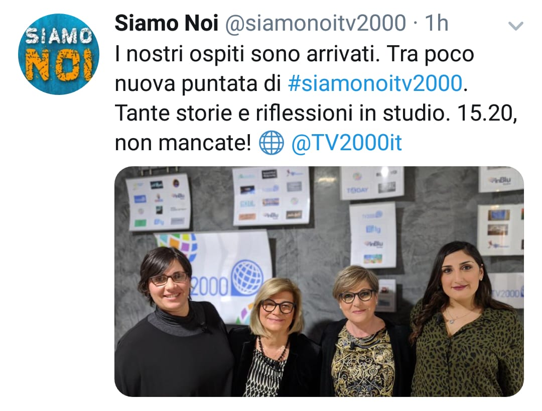 Il giorno 8 gennaio, la nostra Pamela Pompei è stata ospite della trasmissione in diretta “Siamo noi“, in onda su TV2000, per parlare dei “Siblings“, termine inglese per definire i fratelli e le sorelle di persone con disabilità, argomento sul quale Pamela ha ideato e prodotto il nuovo film-documentario del Comitato, “ATTRAVERSO TE, Storie di Siblings“, uscito a dicembre scorso.