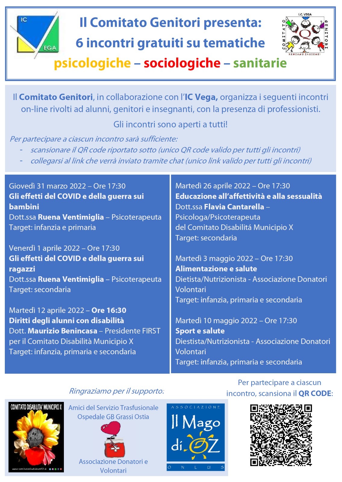 - Tutti i 6 incontri sono aperti anche ai genitori che non sono della nostra scuola.